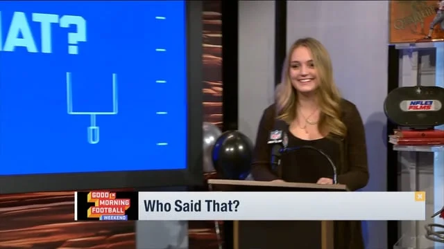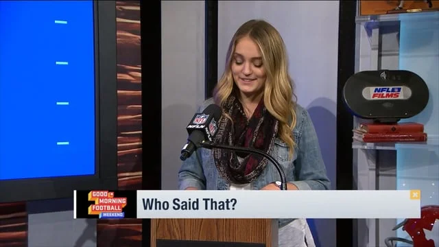As a Production Assistant with NFL Films, I had the privilege of working with the NFL Network. Our crew produced two shows: "Good Morning Football Weekend" and "NFL GameDay Morning". I edited bumps and broll tapes using Final Cut. On show days, I live cut segments to post on social media and promptly send reporters their hits. I monitored our Twitter feed for content that we could incorporate into our segments such as breaking news and viewer commentary. I created GIFs, responded to fans and sent out teasers. Below are some of my favorite Tweets, as well as times I was featured in a segment called, "Who Said That?".